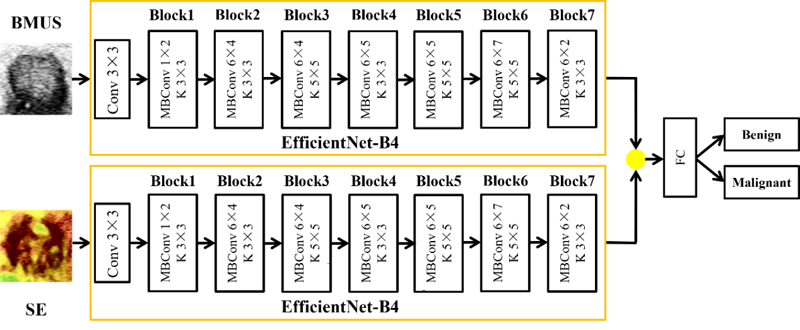隨著人工智能(AI)的發(fā)展,利用計算機輔助診斷(CAD)技術(shù)進行甲狀腺結(jié)節(jié)的自動篩查在臨床實踐中具有巨大潛力,可有效減少漏診和誤診風險。針對上述情況,科學島研究人員采用深度學習框架,整合B模式超聲(BMUS,顯示組織解剖結(jié)構(gòu))與應(yīng)變彈性成像(SE,通過組織硬度反映病變性質(zhì)),構(gòu)建AI診斷模型,專門針對具有鈣化、低回聲、邊界不規(guī)則等高危特征的 TI-RADS 4 類結(jié)節(jié),實現(xiàn)惡性風險的精準預測。實驗結(jié)果表明,該模型的AUC值在測試集和外部驗證集上分別達到了0.937和0.927,明顯優(yōu)于傳統(tǒng)單模態(tài)圖像模型。