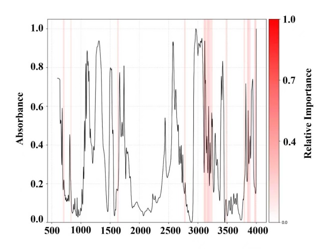 針對(duì)上述難題,本研究創(chuàng)新性地將高效注意力機(jī)制CBAM應(yīng)用于雙分支卷積神經(jīng)網(wǎng)絡(luò)上,兩個(gè)分支將CBAM注意力模塊的輸出進(jìn)行連接,提取更多光譜特征,從而優(yōu)化模型的分類性能,并取得高達(dá)98%的分類準(zhǔn)確率,優(yōu)于RF、PLS-DA、SVM、KNN、CNN等傳統(tǒng)算法模型。CBAM模塊首先通過(guò)通道注意力模塊篩選出關(guān)鍵通道,再借助空間注意力模塊定位各通道中的重要空間區(qū)域,最終生成注意力圖并與輸入特征圖逐元素相乘,完成特征精煉。結(jié)合GradCAM可視化卷積神經(jīng)網(wǎng)絡(luò),更加清晰的顯示了模型表征微塑料過(guò)程中所選取的重要特征。